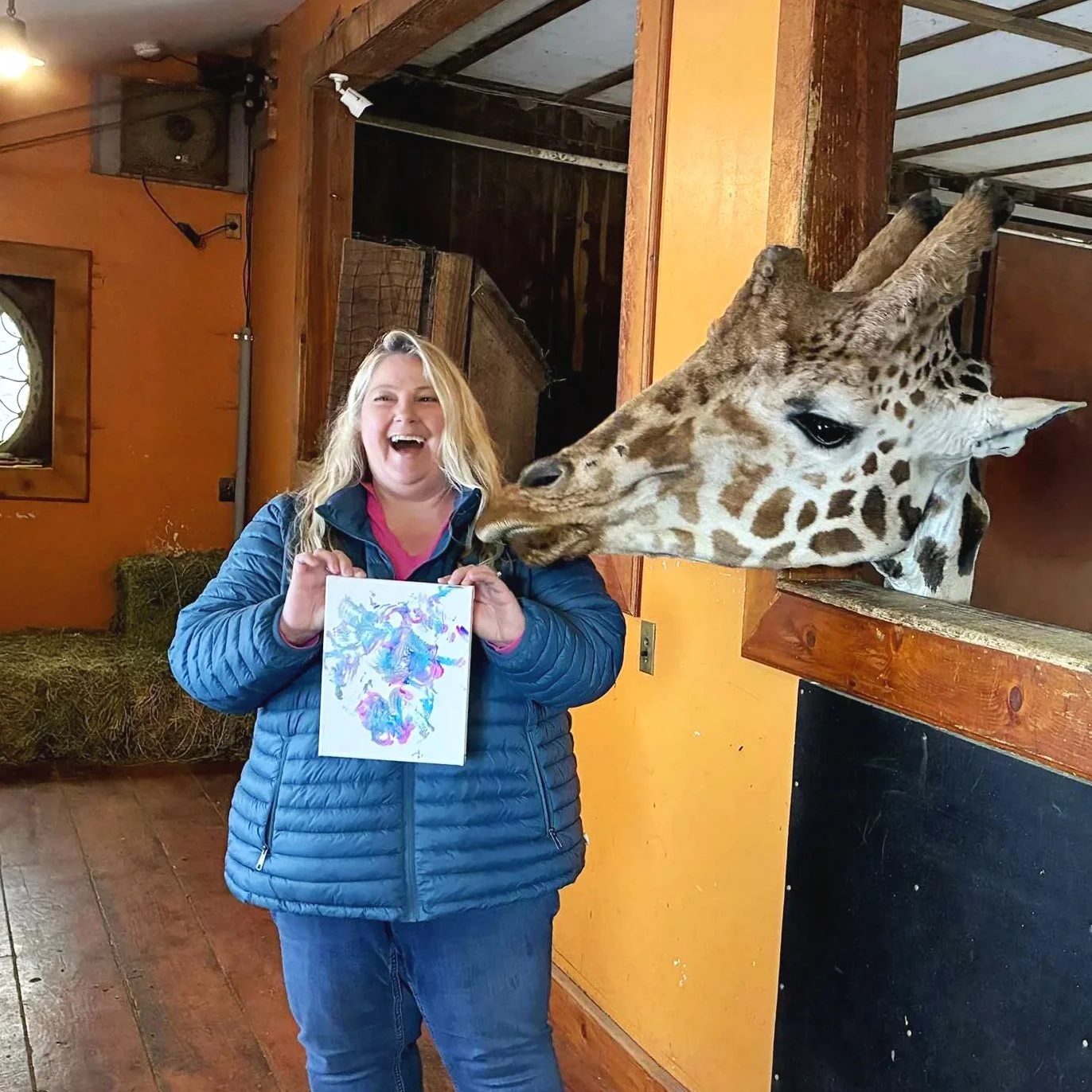 This is a rare opportunity! Choose colors for your canvas then watch a giraffe “paint” it!